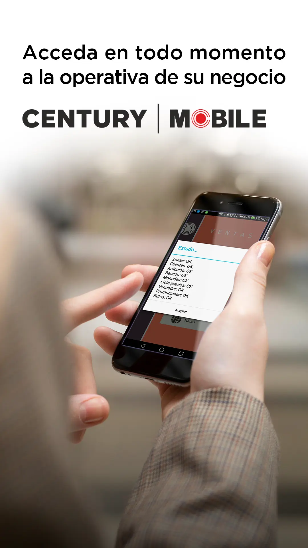 Con Century | Mobile, la solución complementaria de operación móvil integrada a Century Next, tu empresa tiene la capacidad de gestionar sus procesos comerciales desde cualquier lugar y en cualquier momento. Esta herramienta pone toda tu operación en la palma de la mano, permitiendo ejecutar ventas, preventa, cobranzas, registro de cheques, generación de documentos, geolocalización y alertas configuradas, todo desde una app Android diseñada para el trabajo en campo.